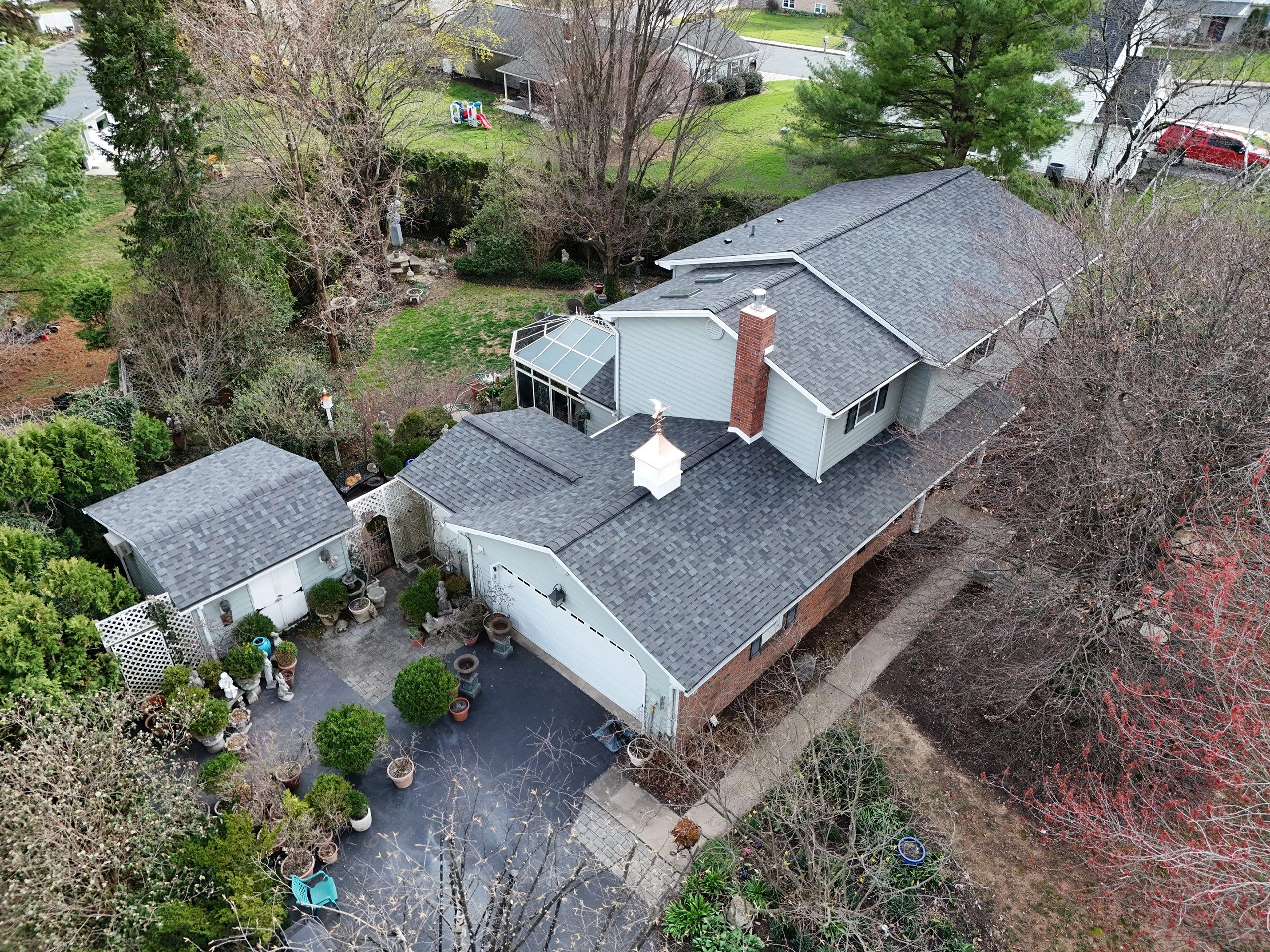 What was once a roof plagued by leaks, deterioration and visible wear is now a cohesive, high-performance system built to last. Beyond protection, the Williamsburg Gray shingles and copper detailing bring a refreshed, polished appearance that stands out for all the right reasons.
